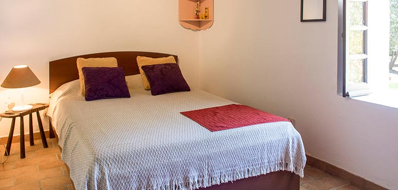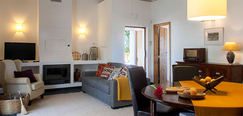 A ligação ao exterior é privilegiada - amplas janelas nos quartos e portas envidraçadas na sala oferecem ao olhar as cores e os jogos de luz das várias horas do dia. A sala, com mesa de refeições e zona de estar junto à lareira, está equipada com televisão e DVD. A porta dá acesso direto ao telheiro, onde poderá tomar o pequeno almoço